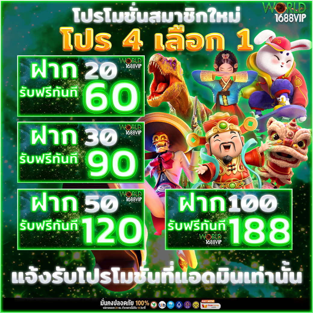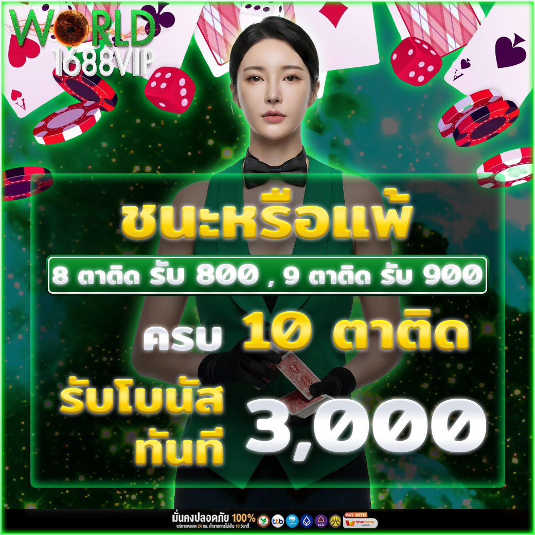 ที่น่าสนใจคือ เมื่อคุณสมัครสมาชิกใหม่กับ World1688vip คุณจะได้รับโบนัสต้อนรับสุดพิเศษถึง 100% ของยอดฝากแรก นั่นหมายความว่าถ้าคุณฝากเงิน 1,000 บาท คุณจะได้เครดิตเพิ่มอีก 1,000 บาททันที ทำให้มีเงินในการเดิมพันถึง 2,000 บาท! นอกจากนี้ เรายังมีโปรโมชั่นพิเศษที่หมุนเวียนเปลี่ยนไปทุกวัน เช่น คืนยอดเสีย โบนัสเติมเงิน และแจกเครดิตฟรี